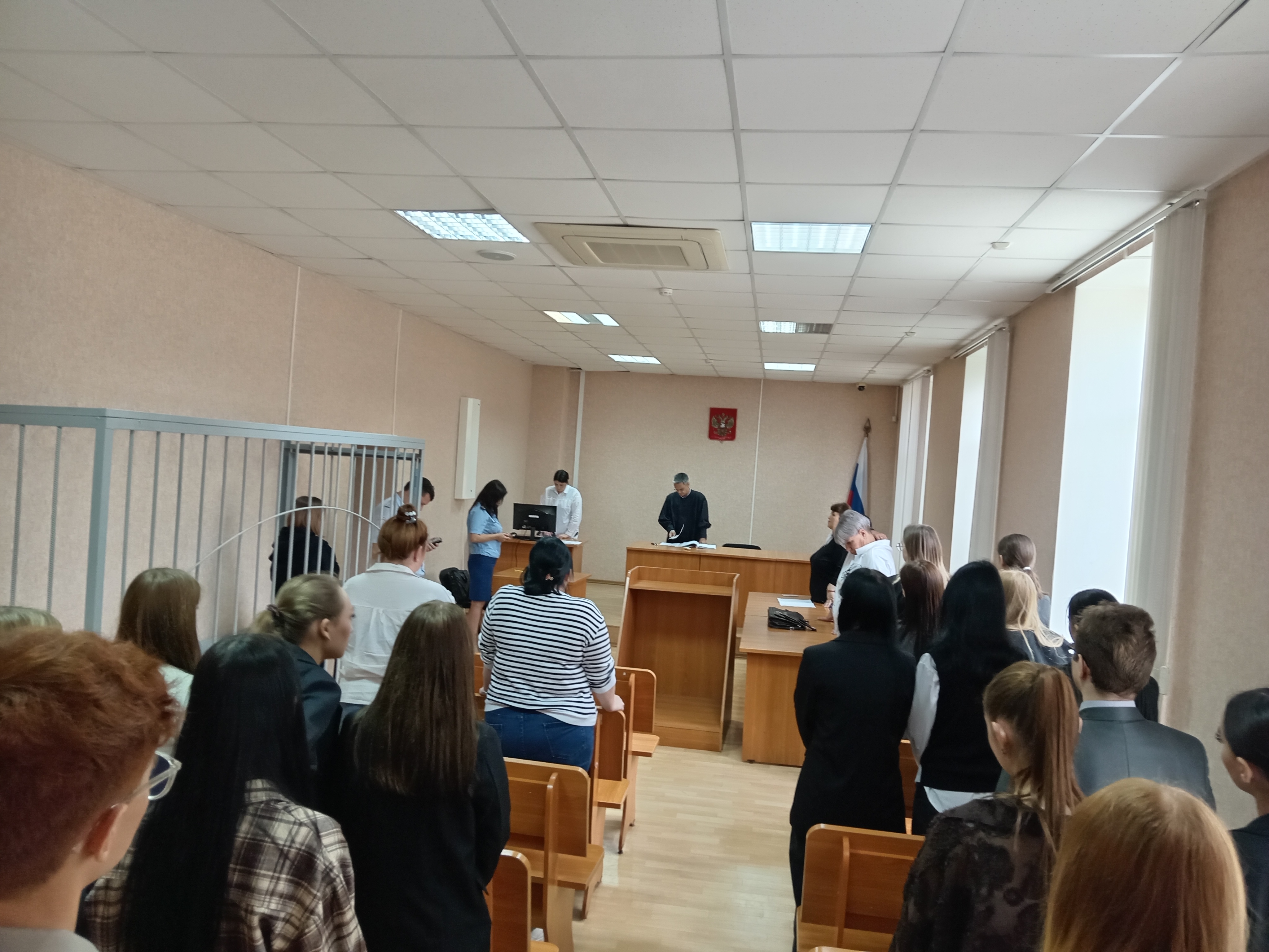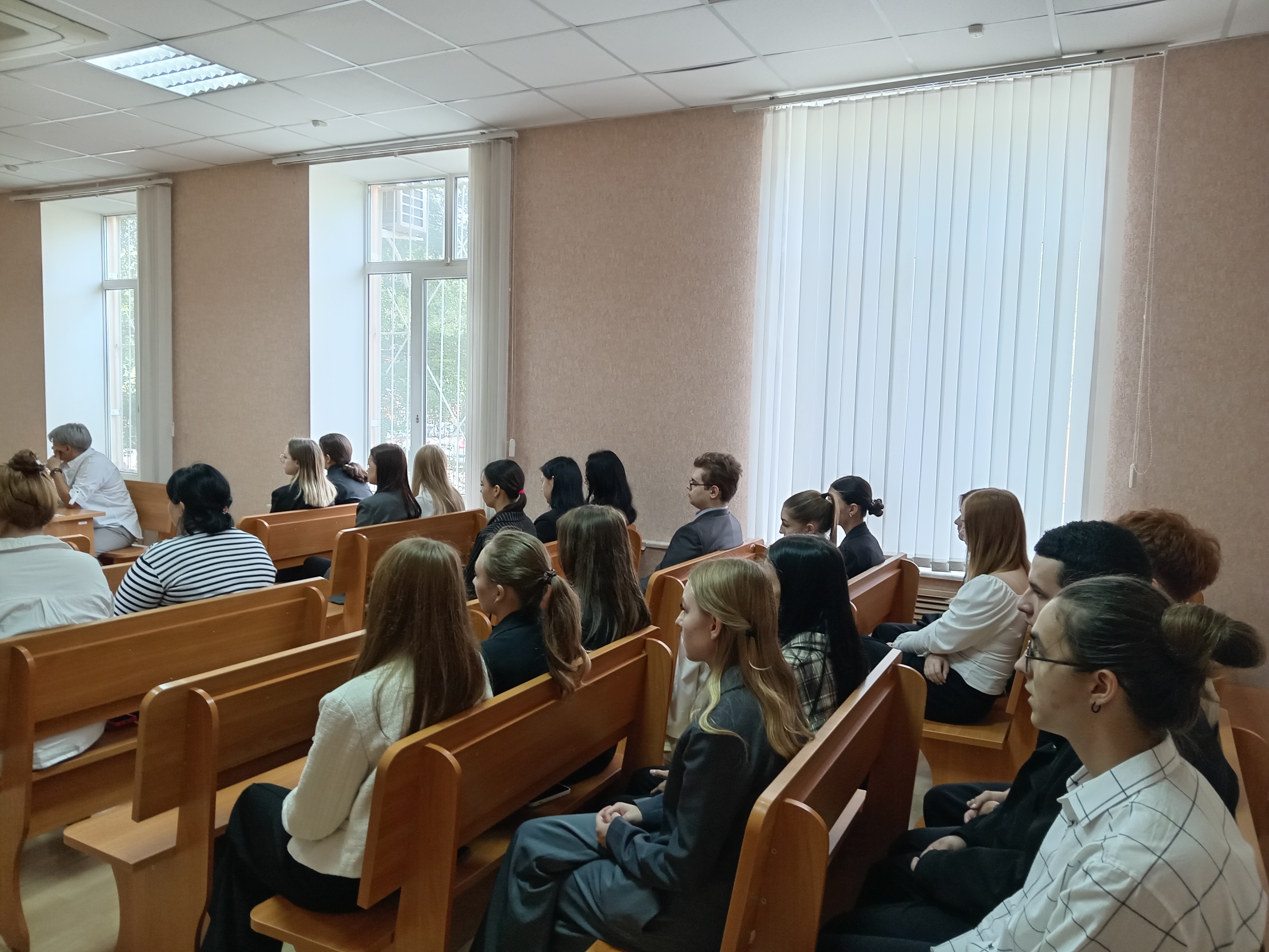 В качестве слушателей, побывали на рассмотрении уголовного дела, в отношении подсудимой обвиняемой по ч. 1 ст. 108 УК РФ за убийство, совершенное при превышении пределов необходимой обороны.